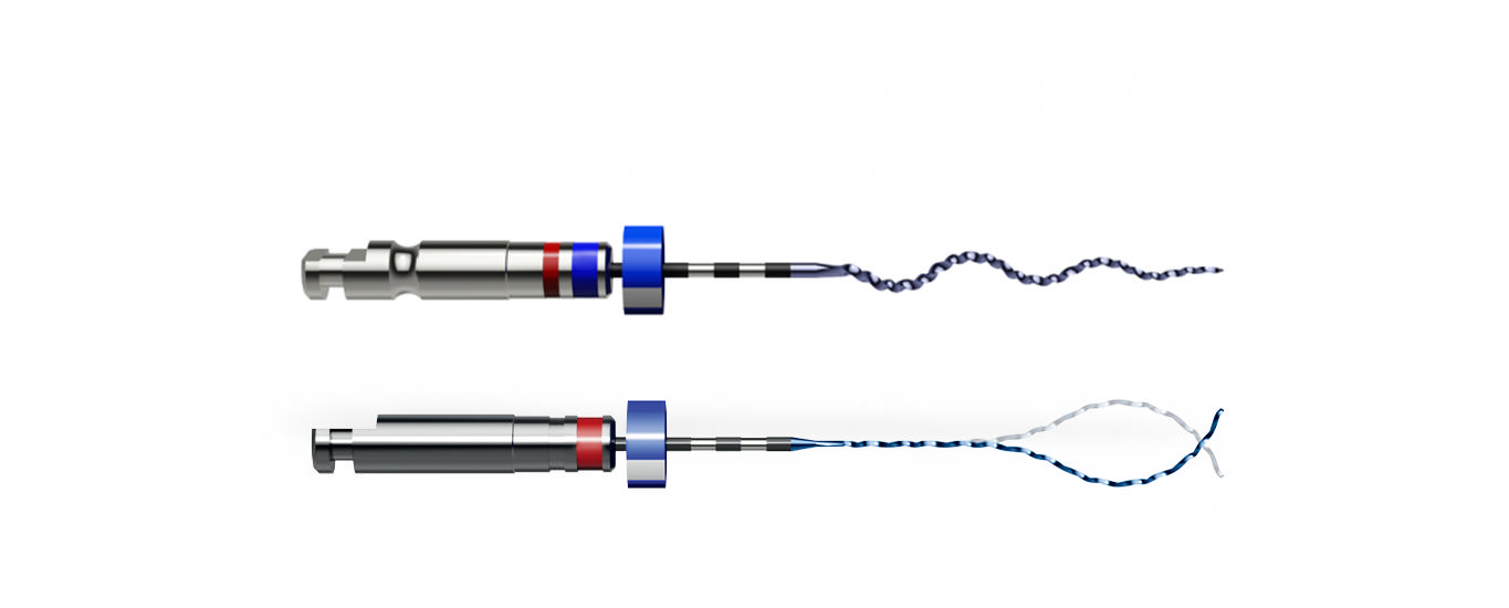 For nylig er instrumenter, udviklet til at fjerne kanalindholdet tredimensionelt, blevet inkluderet i det endodontiske instrumentarium. Desuden fjerner disse revolutionerende instrumenter så lidt sundt væv som muligt. (XP-3D Shaper ™ / Finisher, FKG Dentaire, Schweiz).