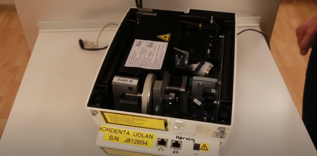 Se med, når vores servicetekniker, Thomas, viser, hvordan du let fjerne pap, der har sat sig fast i en Digora Optime DXR-50 scanner.