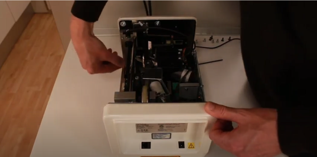 Se med, når vores servicetekniker, Thomas, viser, hvordan du let fjerner pap, der har sat sig fast i en Digora Optime UV.